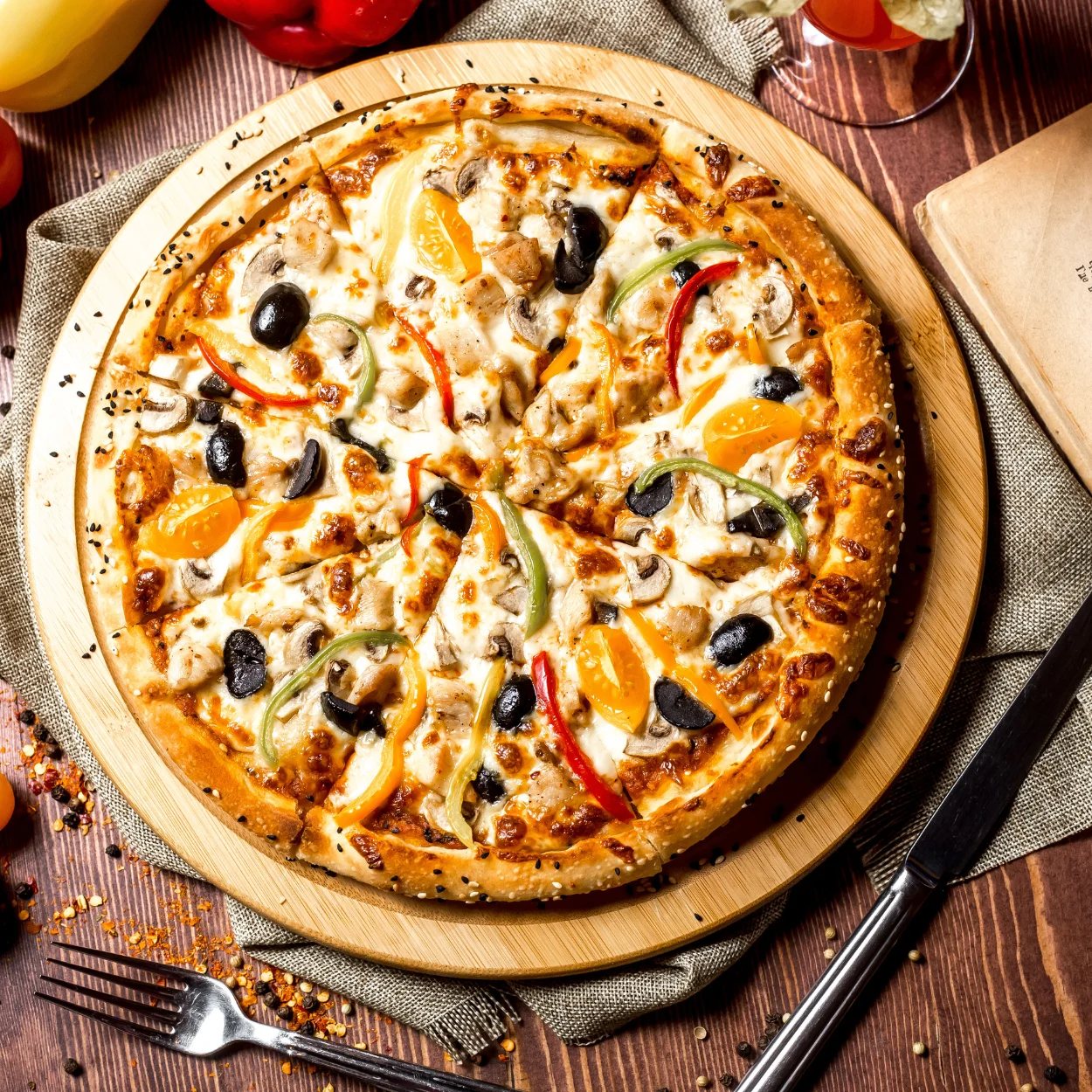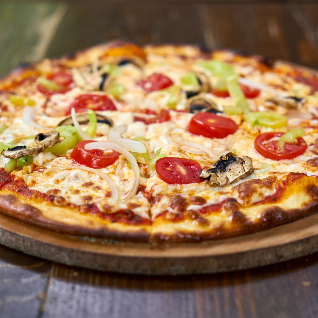 A garden-fresh delight! A colorful medley of seasonal vegetables atop a cheesy, flavorful base. Crisp, vibrant, and packed with wholesome flavor in every slice