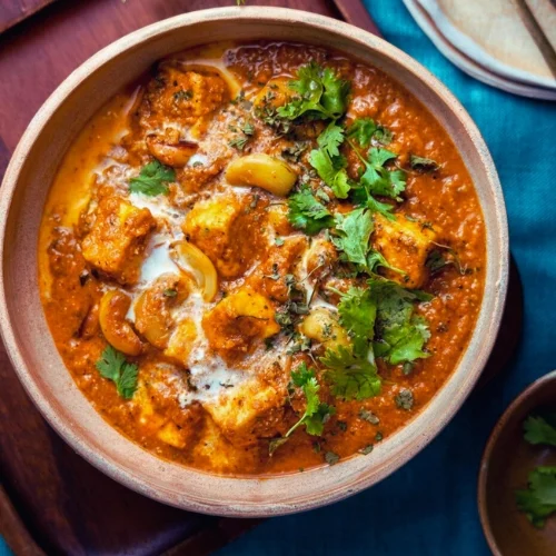 Soft paneer cubes cooked in a rich, velvety gravy of roasted cashews and aromatic spices. A creamy and indulgent vegetarian delight