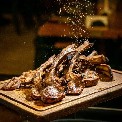 Tender, bone-in lamb chops marinated in a signature blend of spices and flame-grilled for a smoky, charred finish. A premium and flavorful grilled specialty.