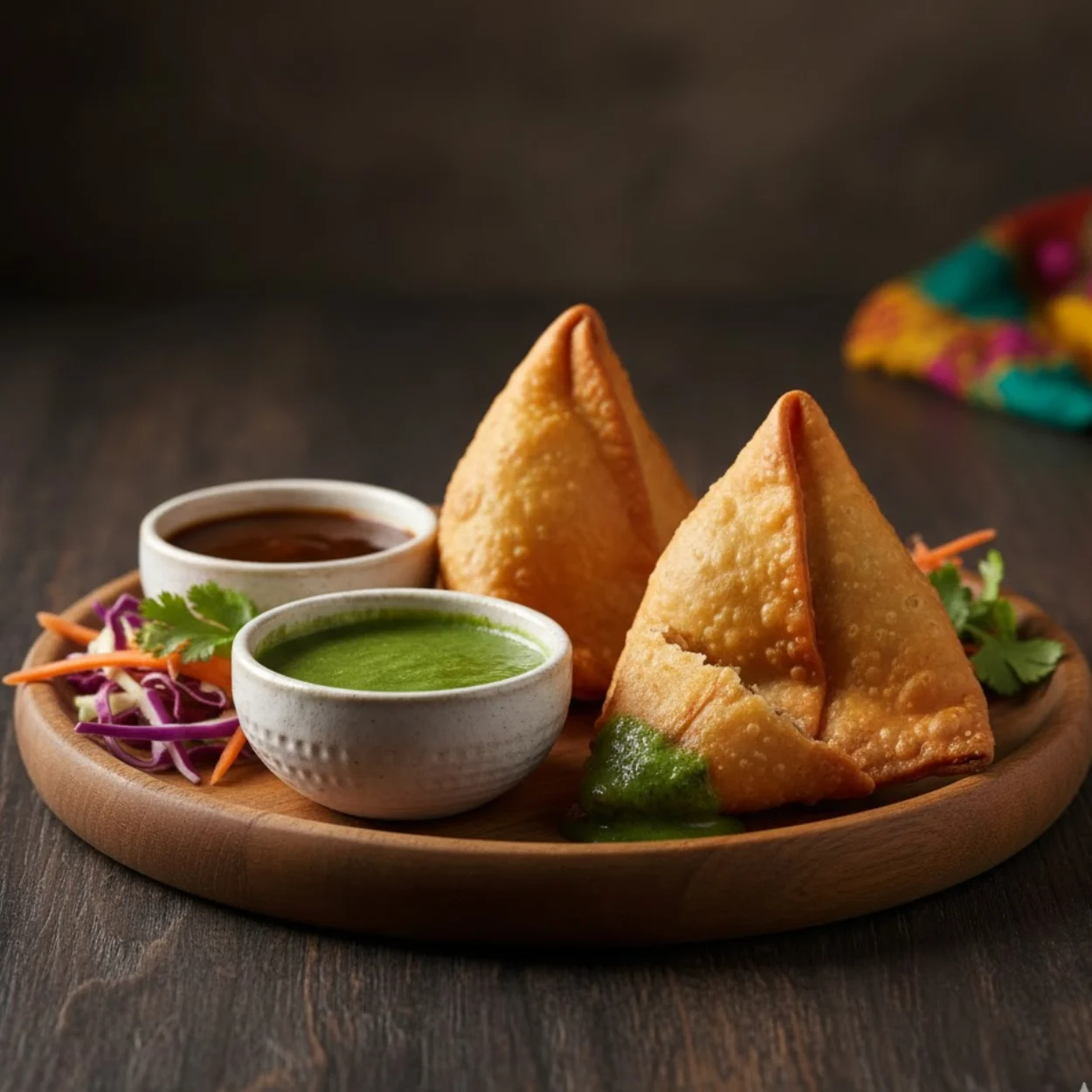 Crispy samosa pieces drizzled with cool yogurt, tangy chutneys, and a sprinkle of traditional spices. A perfect blend of sweet and savory flavors.