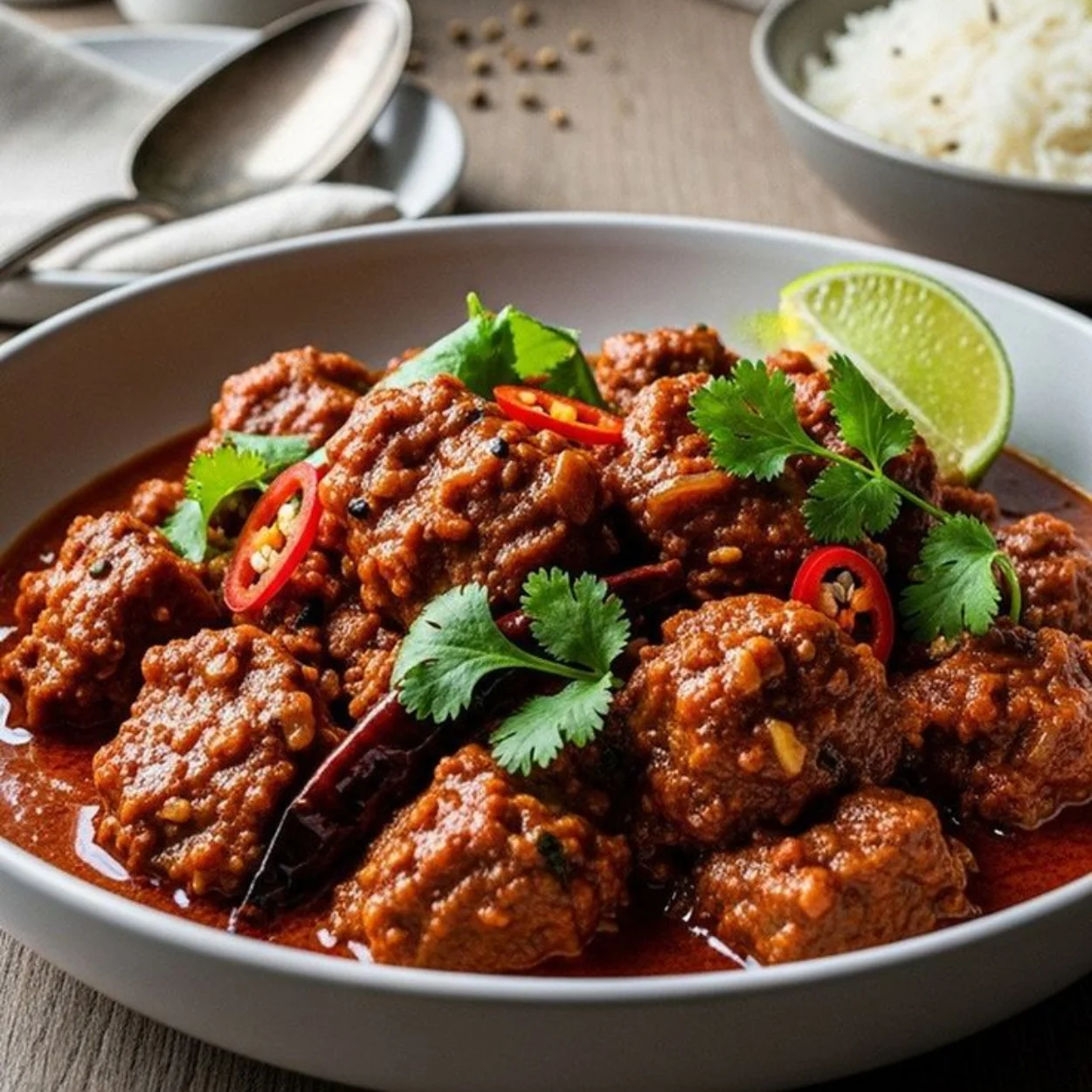 A fiery Goa classic! Tender lamb simmered in a bold, tangy gravy sharpened with vinegar and a potent blend of red chilies. Intense, zesty, and perfect for those who love heat.