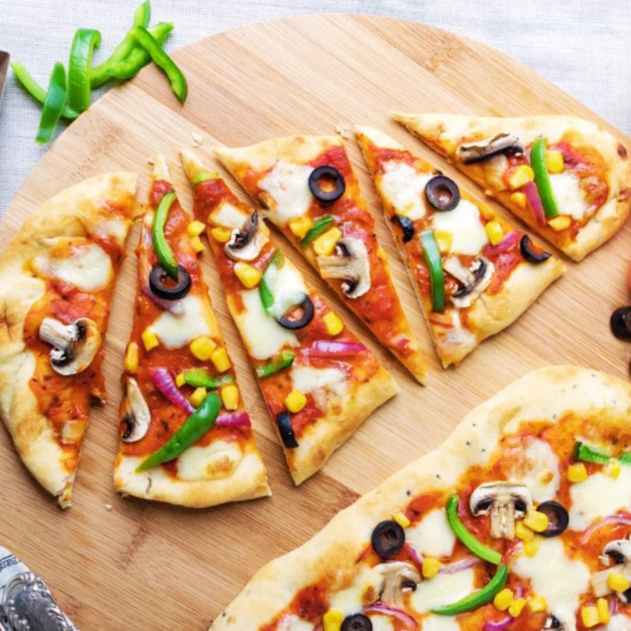 Fluffy naan serves as the perfect golden crust, topped with melty cheese and your choice of fresh vegetables, savory paneer, or spiced chicken. A crispy, chewy, and flavorful twist on a classic