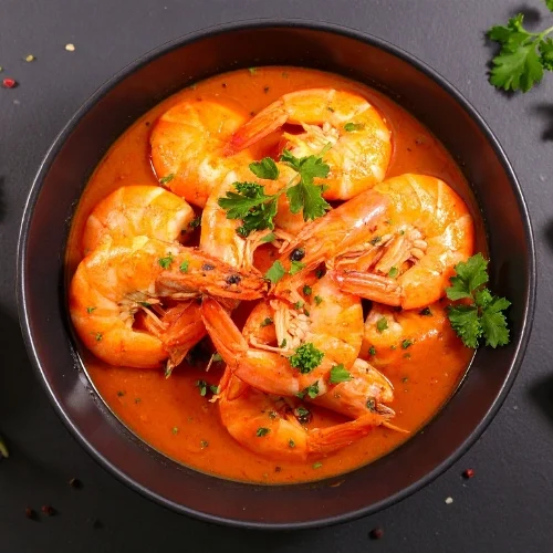 Fresh prawns sautéed with aromatic spices in a rich, savory house-made gravy