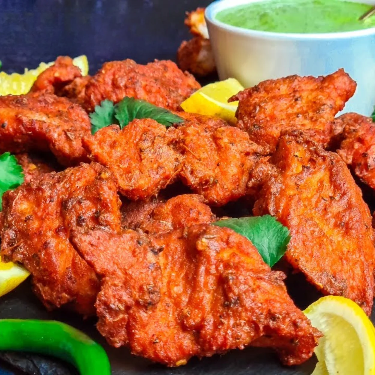 Crispy, golden-fried chicken bites tossed in a vibrant blend of aromatic spices and tangy flavors. A classic and irresistible favorite.