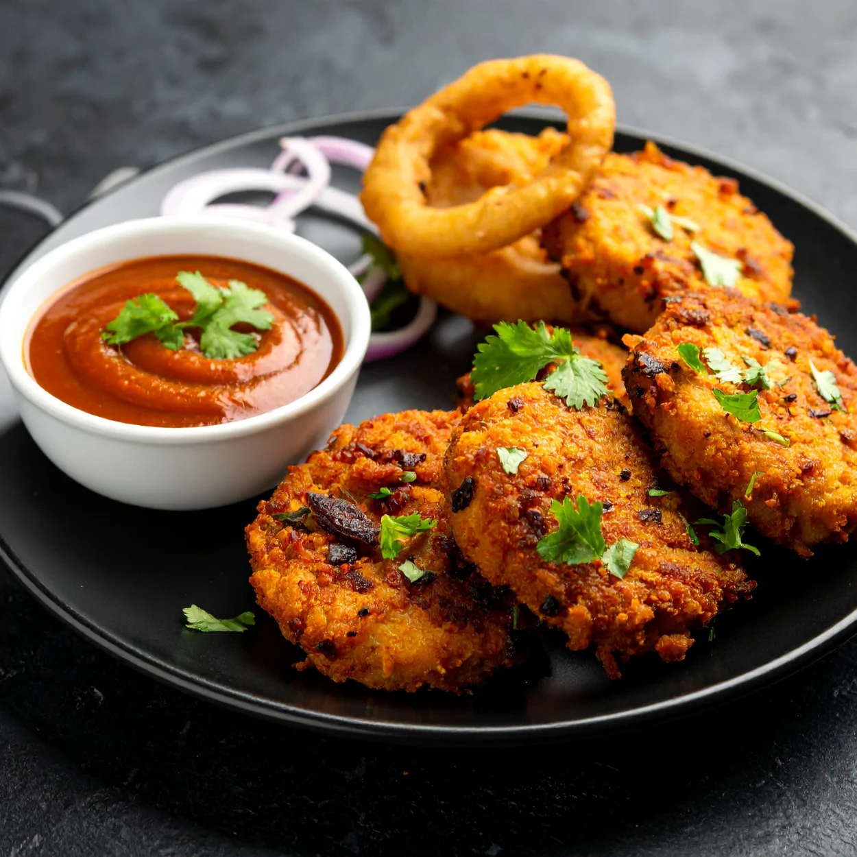 Crispy vegetable fritters dipped in a seasoned chickpea batter and golden-fried. A classic, crunchy Indian snack